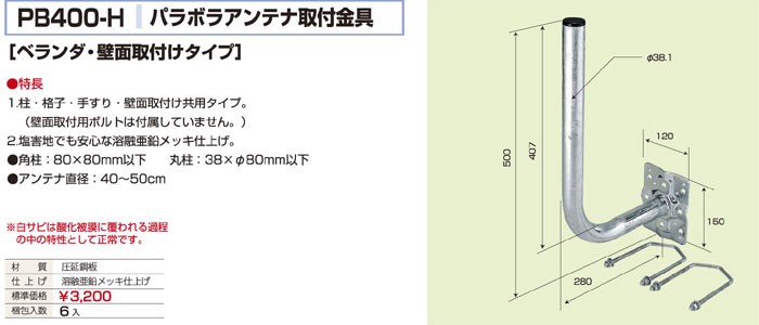 バクマ工業 パラボラアンテナ取付金具 ベランダ・壁面取付タイプ PB-400H