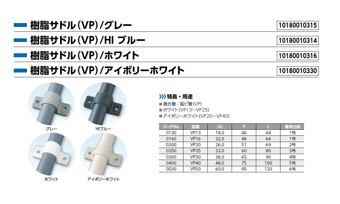 ●適合管:塩ビ管(VP)