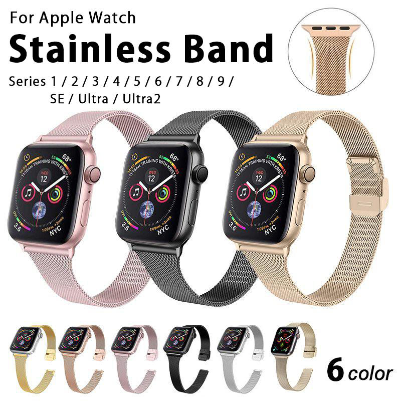 アップルウォッチ バンド スリム ステンレス Apple Watch ベルト ミラネーゼ 細身 レディース 女性 38mm 40mm 41mm 42mm 44mm 45mm 49mm