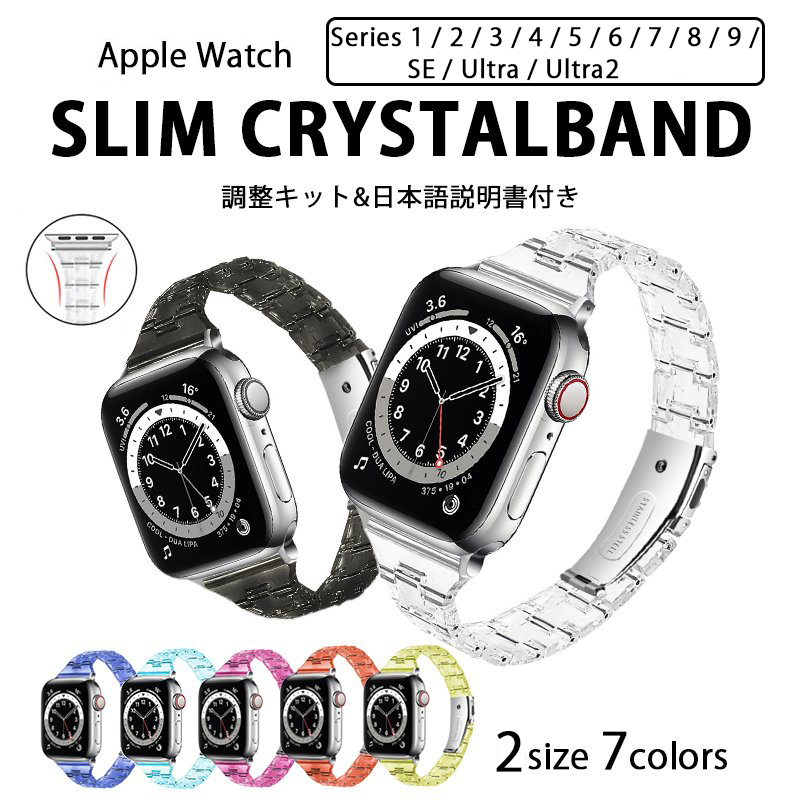 NEW アップルウォッチ バンド 透明 スリム 細身 調整キッド付き Apple Watch クリア 蛍光色 軽量 調節可能 韓国 レディース 女性 かわいい おしゃれ