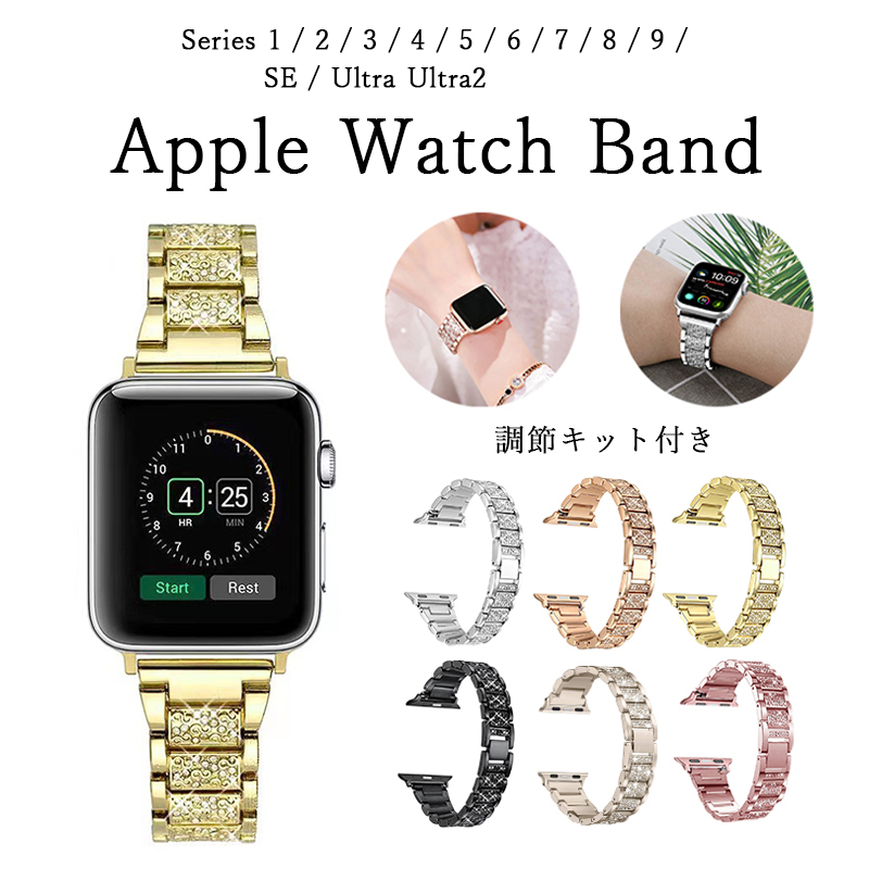 アップルウォッチ Apple watch バンド 合金 キラキラ ストーン 調整キッド付き ベルト 高級感 調節可能 韓国 メンズ レディース かわいい おしゃれ