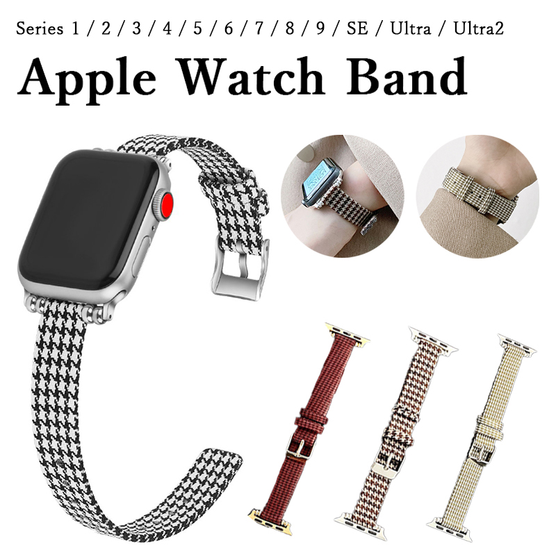 アップルウォッチ Apple watch バンド ベルト 千鳥 千鳥格子 柄 細身 細い ゴールド シルバー 高級感 調節可能 韓国 レディース かわいい かっこいい おしゃれ