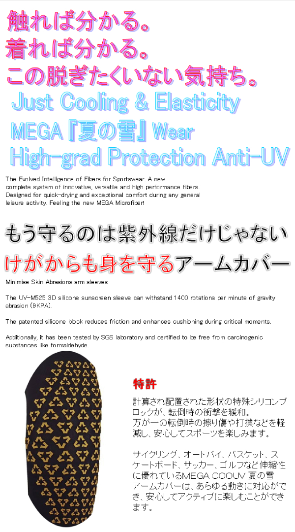MEGA COOUV 夏の雪 アームカバーは高品質な素材を使用し、紫外線から肌を保護します。