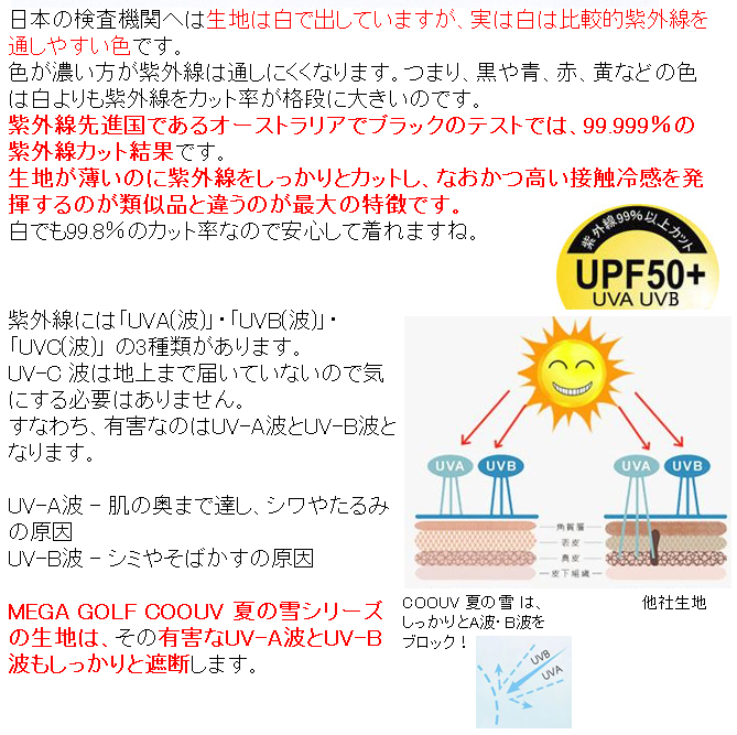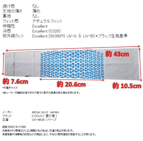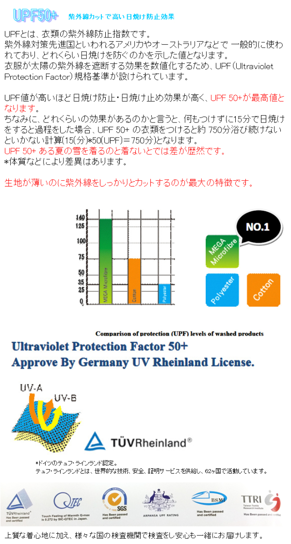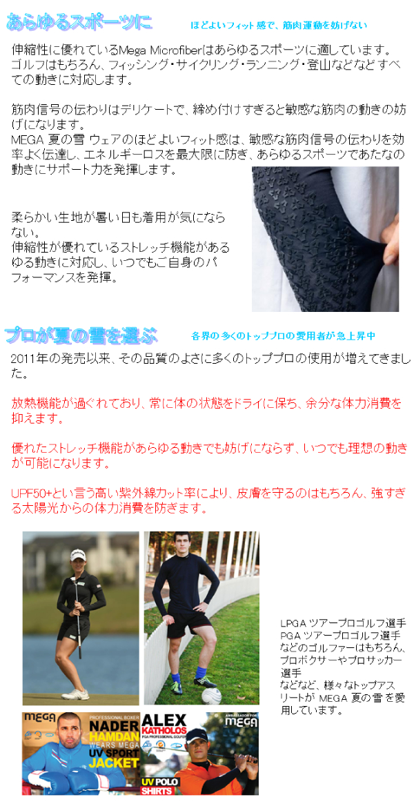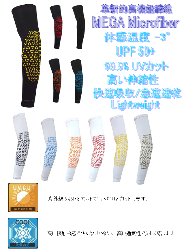 MEGA マイクロファイバーで、【マイナス3°】【UPF50+】【快速吸収/急速速乾】【99.9% UV カット】【軽量】【高い伸縮性(ストレッチ)】【ひんやり 涼・冷感】