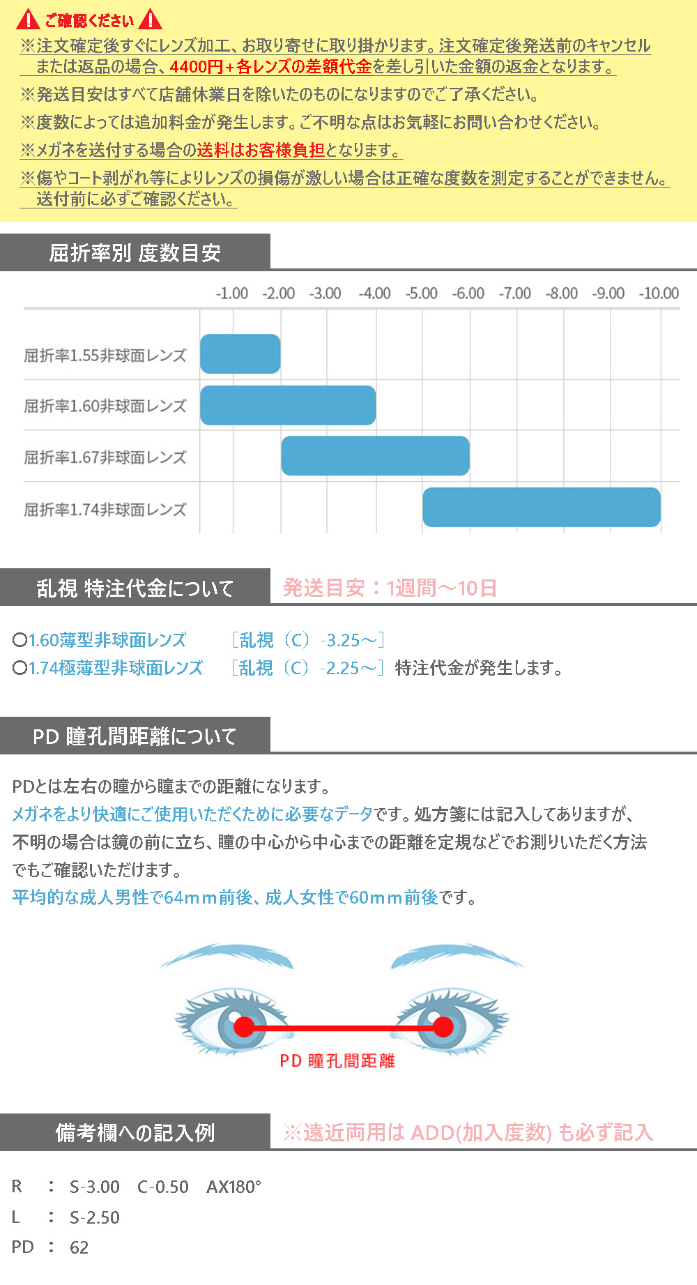 ※レンズ加工後、キャンセルまたは返品の場合レンズ代金の返品は致しかねます。