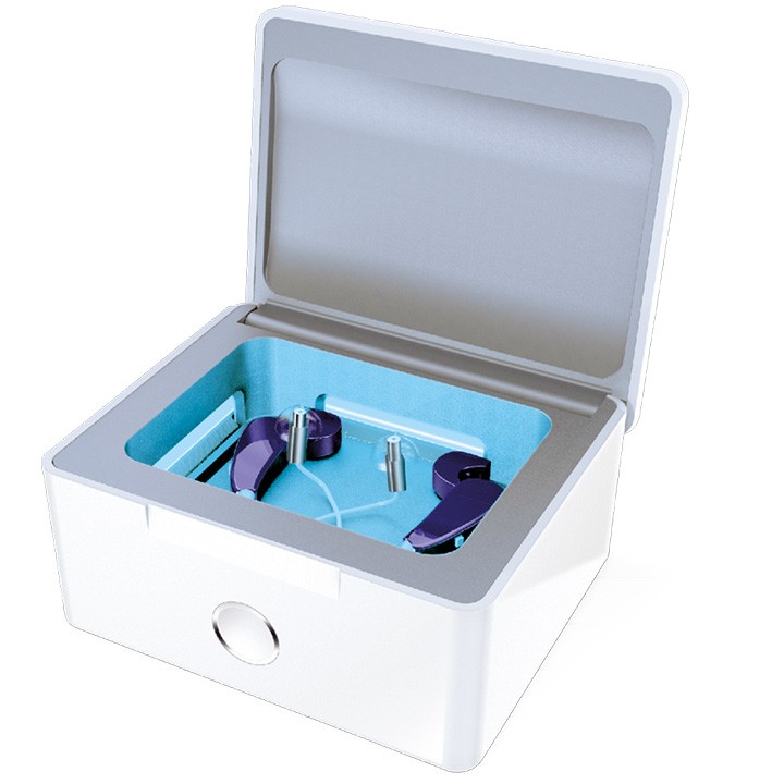 毎日の補聴器ケアをより一層確実に行う「ケアソリューション」 ◎紫外線UVランプが99%除菌 ◎45℃でやさしく乾燥(自動タイマー 30分) ◎3年保証つき 外寸:横×奥行き×高さ(mm) 93×76×48 内寸(乾燥室):横×奥行き×高さ(mm) 70×51×21