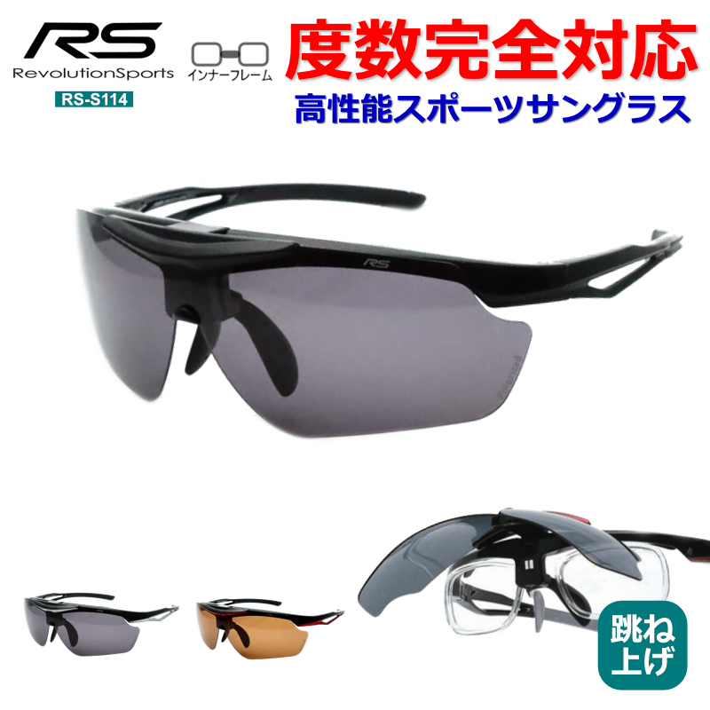 RS-S114 レボリューションスポーツ スポーツサングラス 跳ね上げ機能つき 度入り完成品セット 交換レンズ2枚 偏光レンズ ロードバイク スポーツ