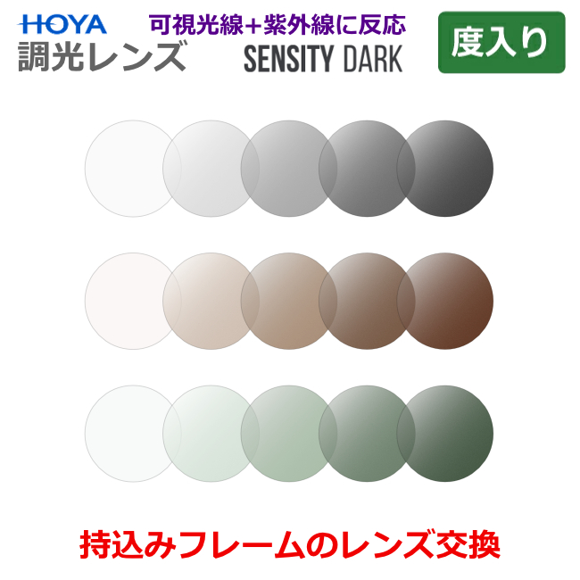 度付き 可視光調光レンズ センシティダーク 可視光+紫外線で色が変わる 調光レンズ HOYA製 1.60 1.67 球面 非球面 HOYA SENSITY DARK(2枚1組)