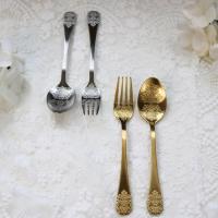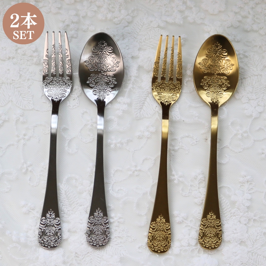 | クラシカルなアラベスク模様が刻印された ゴールド・シルバーのティーフォークとティースプーン。 お手入れしやすいステンレス製です。 食洗機も使用可能で安心。 華奢なフォルムに繊細な柄が施されたエレガントなデザインで、 ティータイムのおもてなしや、アフタヌーンティーにもぴったり。 同色・同種類2本セットです。 お好きな種類をお選びください。 |