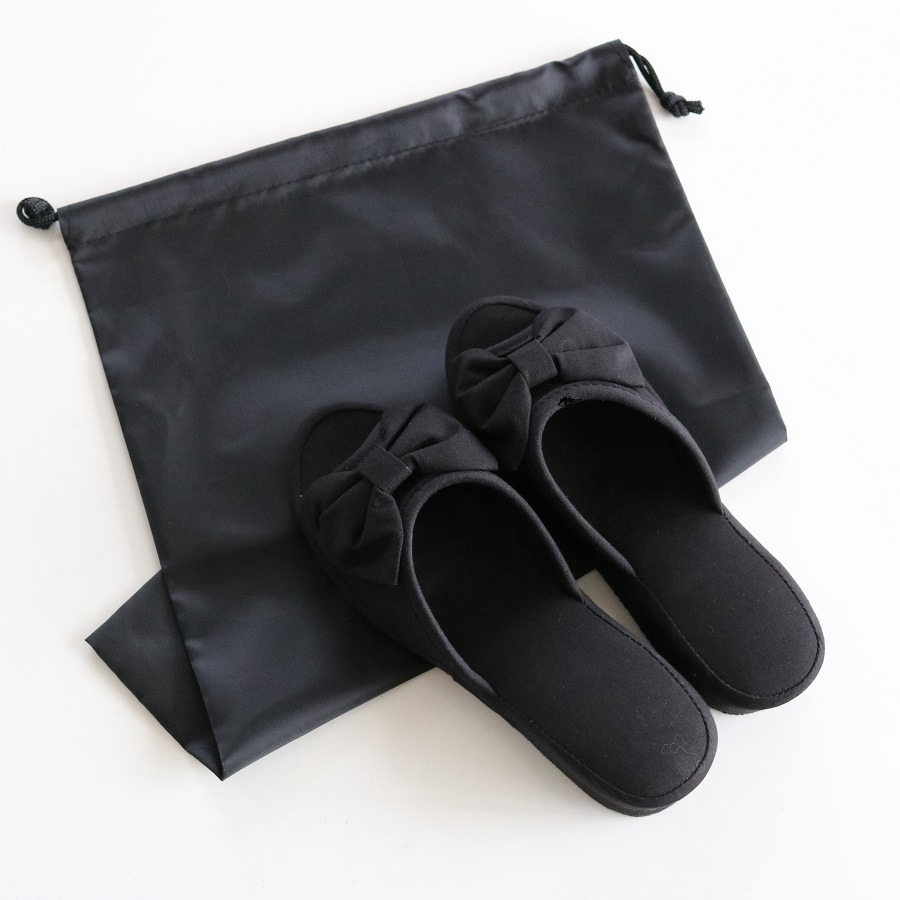 | 収納袋付き 携帯できる 黒リボンスリッパ |