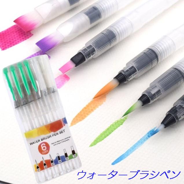 ウォーターブラシセット 水筆セット ペン 水彩 筆 極細 極太 6本 キャップ付き スケッチ 6本セット 筆ペン 水筆ペン アクリル 絵の具 ブラシ 水彩ペン