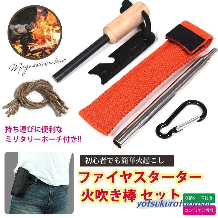 ファイヤースターター 火吹き棒 ポーチ セット 火起こし 焚き火 ソロキャンプ 着火 バーベキュー ソロ キャンプ 火打石