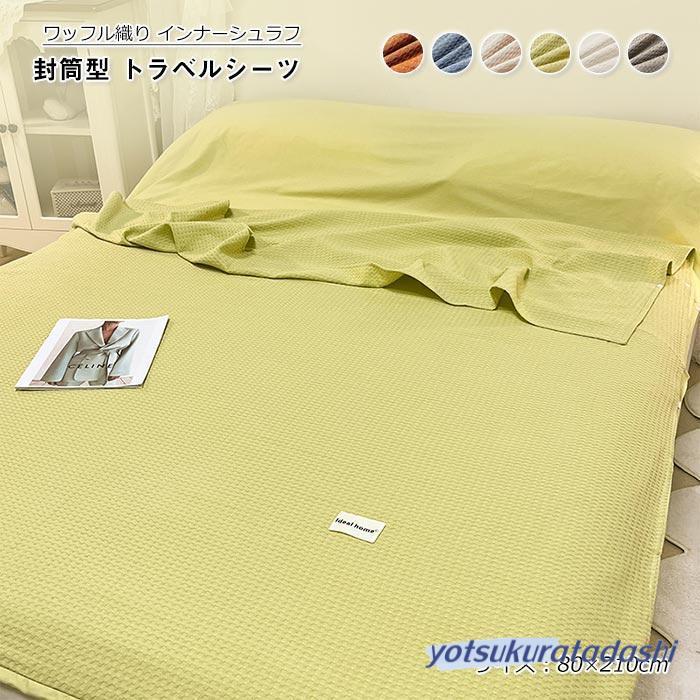 インナーシュラフ 寝袋 ワッフル織り 綿100% インナーシーツ 封筒型 収納袋付き コンパクト シーツ トラベルシーツ 肌触り良い 通気性 洗える 80×210cm素材