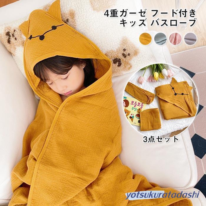 バスローブ 子供 キッズ フード付き バスタオル ガーゼタオル ガーゼ 綿00% 肌に優しい ベビー おくるみ こども用 可愛い お風呂 出産祝い 3点セット素材
