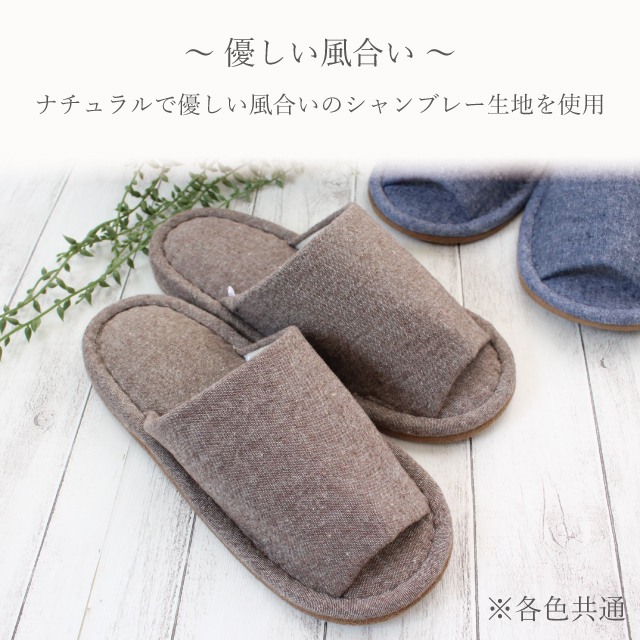 スリッパ 洗える 来客用 シャンブレー生地 リビングスリッパ M/Lsize 1足
