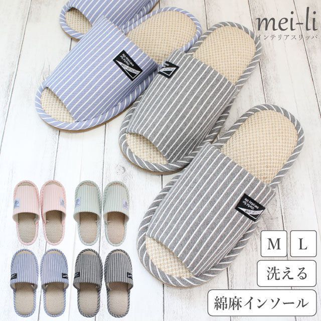 スリッパ 2足セット 洗える 麻綿インソール ストライプ 春 夏 M L サイズ 送料無料