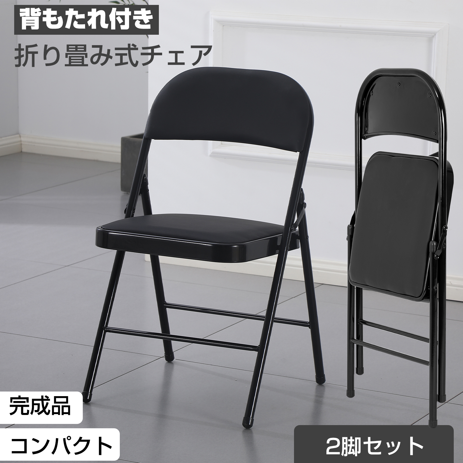 折りたたみチェア コンパクト 軽量 背もたれ付 パイプ椅子 ダイニングチェア 耐荷重120Kg 2脚セット PUレザー クッション 学習チェア 食卓椅子 完成品 おしゃれ