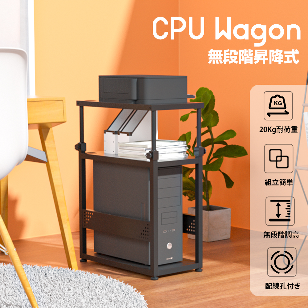 PCワゴン cpuワゴン パソコンワゴン 昇降 スリム 無段階昇降式 サイドワゴン デスクワゴン ゲーミングPCワゴン PCラック 金属製 収納 サイドデスク L字デスク