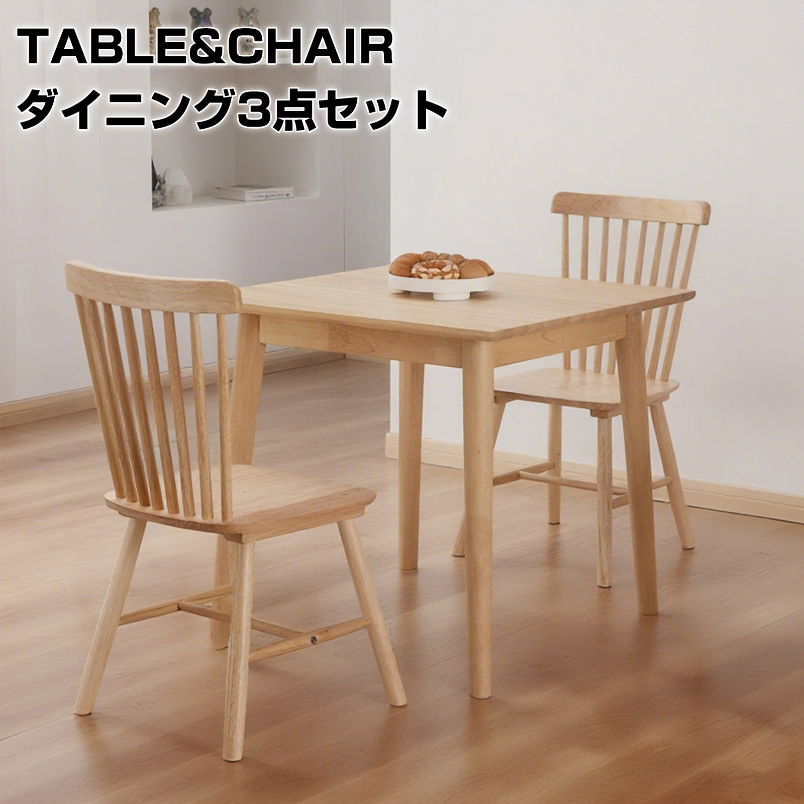ダイニングテーブルセット 2人 ダイニングセット 北欧 おしゃれ 木製 ダイニングテーブル 80cm 天然木 無垢 机 ダイニングチェア ウィンザーチェア 3点セット
