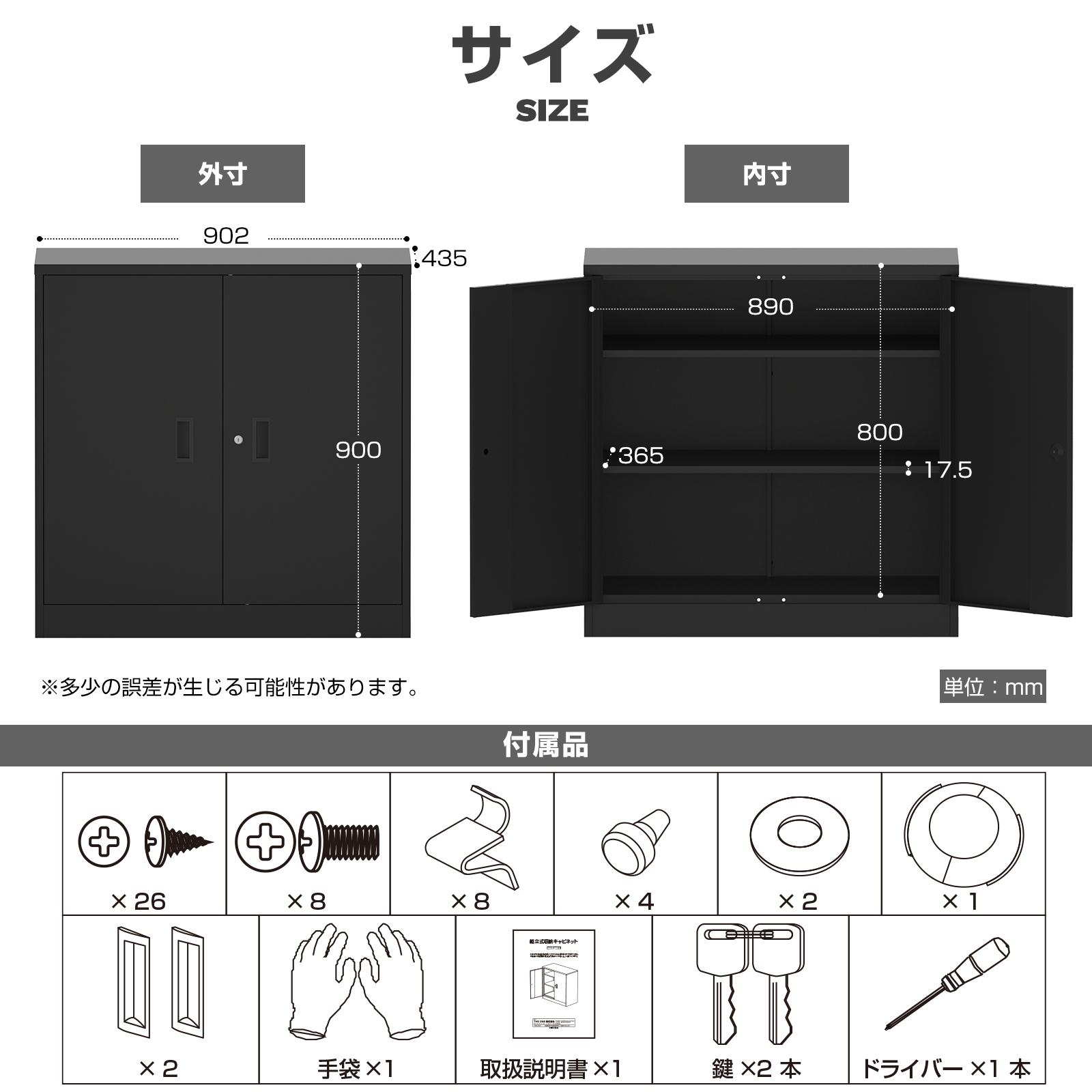 ・セット内容:収納庫本体、組立工具、日本語説明書