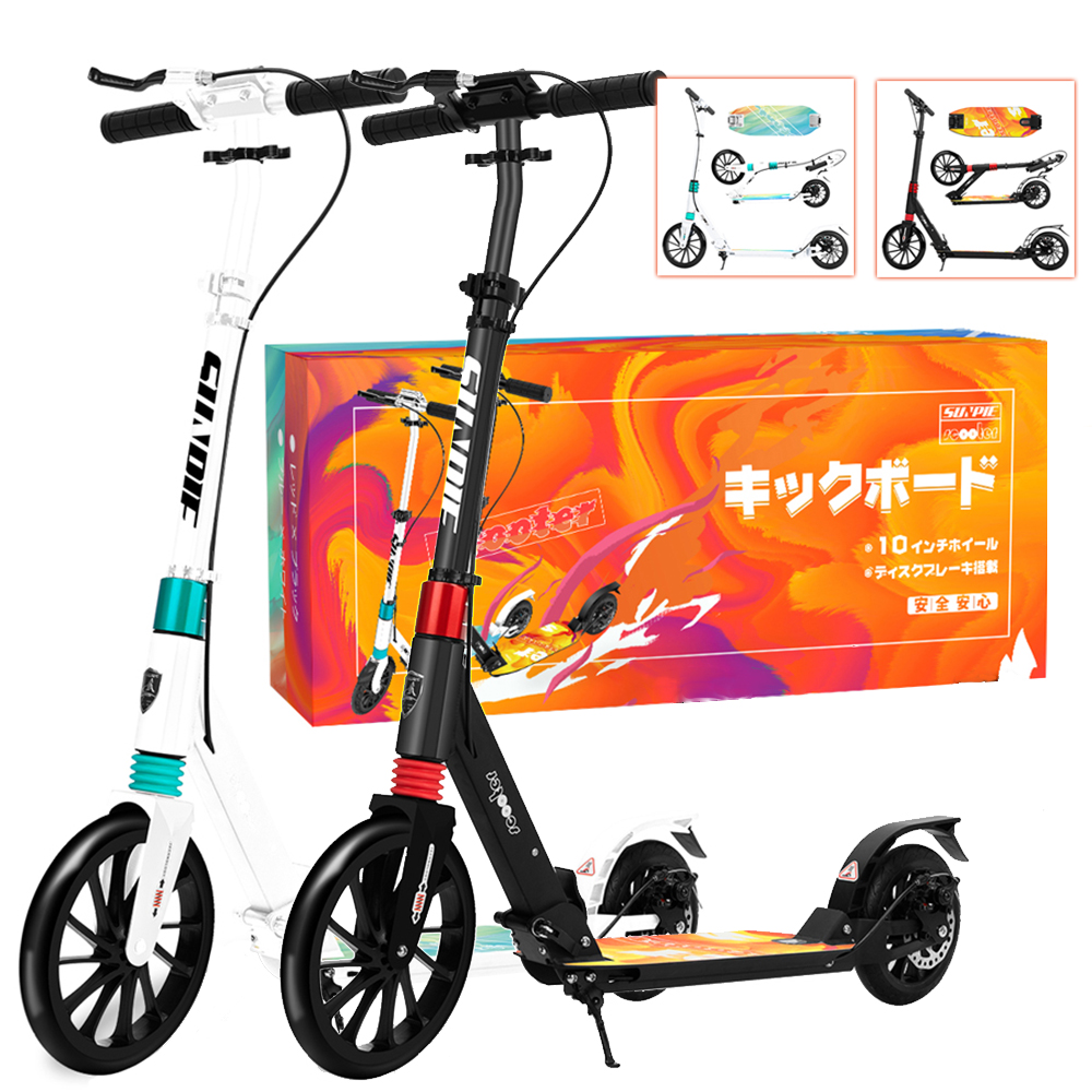 ・年齢を選ばず子供から大人まで楽しめます。大人も満足の乗り心地と移動に最適な特大10インチホイールキックスクーター。ホイールは大きく転倒しにくく走行性はいいです。