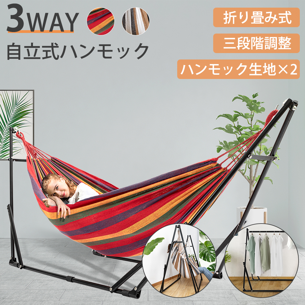 ハンモック 自立式 室内 チェア ハンガーラック ハンモック アウトドア 野外 折りたたみ式スタンド スタンド付き 3way おしゃれ インテリア 昼寝 キャンプ