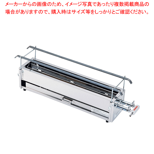 1-0767-0301 9-0763-0301 DYK061 001-0026739-001 ●サイズ:幅×奥行×高さ×全長(mm)600×140×150×710 ●※その他の都市ガス商品を御注文の際は、ガス種を御指定ください。使用上の御注意 ●必ず点火・消火を確認してください。 ●閉めきった部屋で使用されるときには、窓を開けたり換気扇を廻したりして換気に御注意ください。 ●風の吹き返しによるバーナー消火に御注意ください。 ●汁受皿(引出し)には、常に半分以上水を入れてご使用ください。必要に応じ、水を補給してください。 ●本器はSUS430ステンレススチールを使用しておりますが、酸や塩分をつけたまま長時間放置しておきますと腐食することがありますので、使用後は必ずふき取っておいてください。 ●バーナーの目づまりは、必ず掃除してください。 ●ガス消費量:LPG0.42kg/h ●ガス接続口:LPG・都市ガス共にφ9.5mm ●※Q&A ●検索ワード:【 焼き物器 | 焼鳥・うなぎ焼台 】