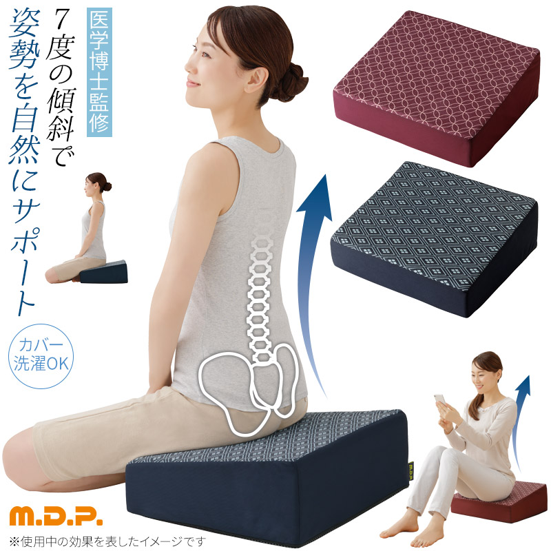 姿勢補整 クッション 座布団 座椅子 低反発 あぐら 猫背 背筋 伸びる 洗える 骨盤 腰 ケア ひざ 膝 体圧分散 傾斜 和柄 和風 M.D.P. 腰にやさしい床坐クッション