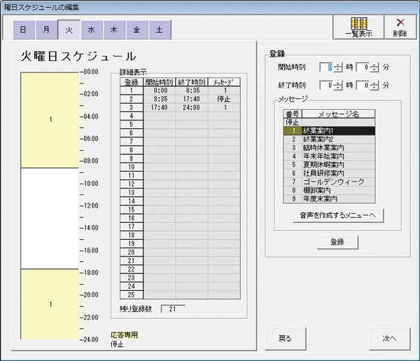 ・年間を通して「応答セット・解除」「メッセージ切替」の操作が自動コントロールできます。