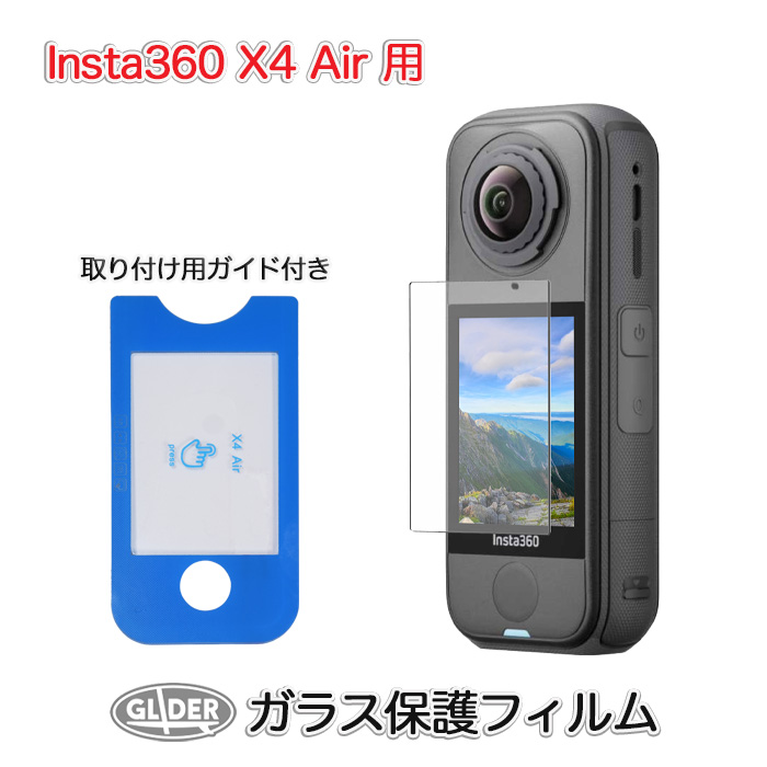 Insta360 X4 Air 用 ガラス 保護フィルム ガイド付き スクリーン保護 フィルム インスタ360 ガラスフィルム 液晶保護 ガラス製 超硬度 9H