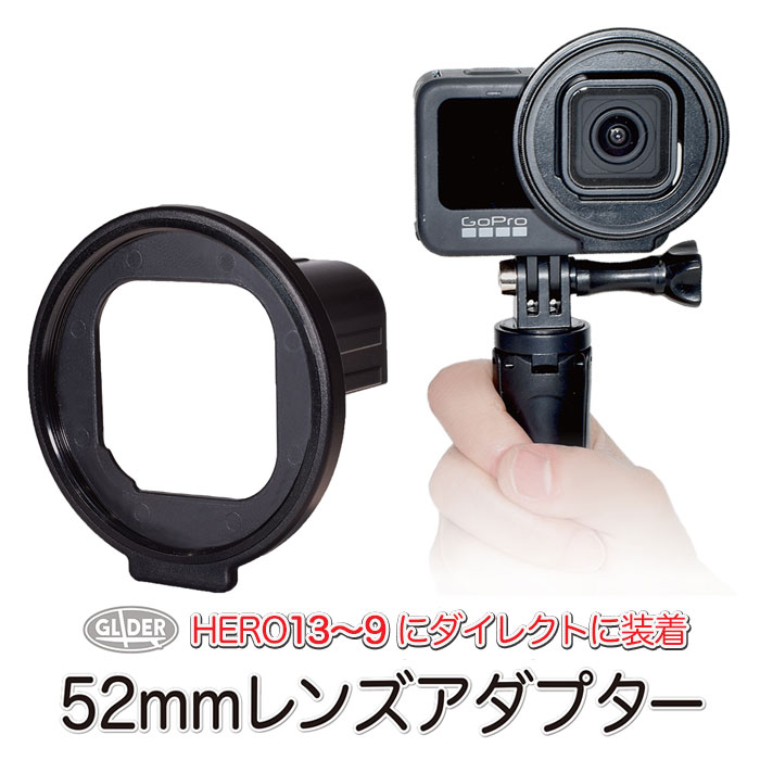 HERO13/HERO12/11/10/9Black用 52mmレンズ アダプター UVフィルターやマクロレンズ装着可 GoPro ゴープロ用