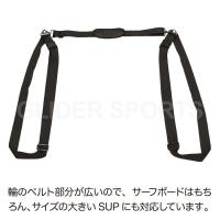■SUP・サーフボード・ロングボードを肩に背負って持ち運びが出来るショルダーベルトです。ホルダーベルトは調整は可能で、ボードを固定する部分が広いので、ほとんどのボード類に対応可能です。