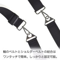 ■ショルダーベルトとボードホルダーベルトとの結合はワンタッチで簡単便利。連結用フック・ストラップベルト共に丈夫で耐久性があります。