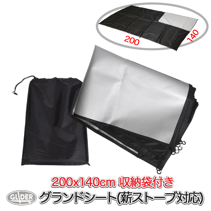 グランドシート 薪ストーブ対応 収納袋付き 防炎加工済 テントシート レジャーシート 200x140cm 防水シート 耐水 高耐水加工済 軽量 折り畳み アウトドア