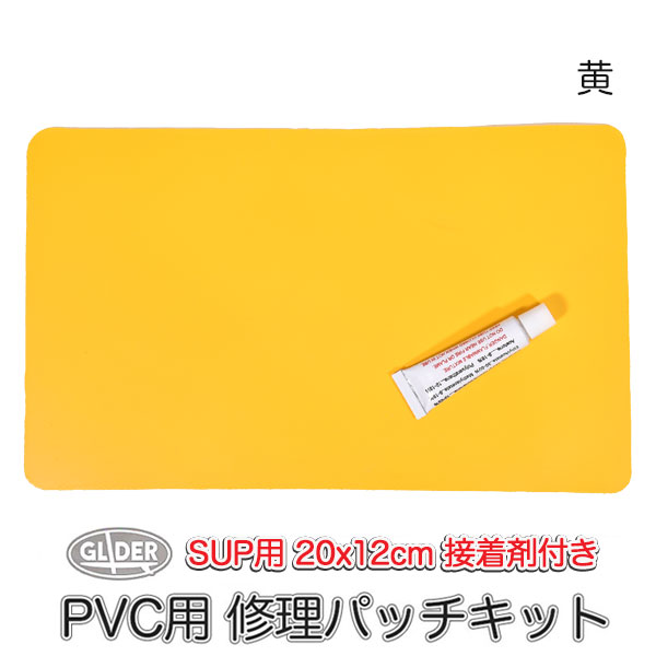 SUP カヤック サップ用 SUP修理パッチキット イエロー 200x120mm 接着剤付 PVCシート 修理 接着 PVCパッチ リペア 補修材料