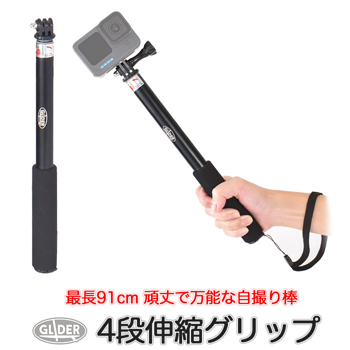 4段伸縮グリップ 自撮り棒 セルフィー アクションカメラ コンデジ DJI/Insta360/GoPro/AKASO用 伸縮式 コンパクト 軽量