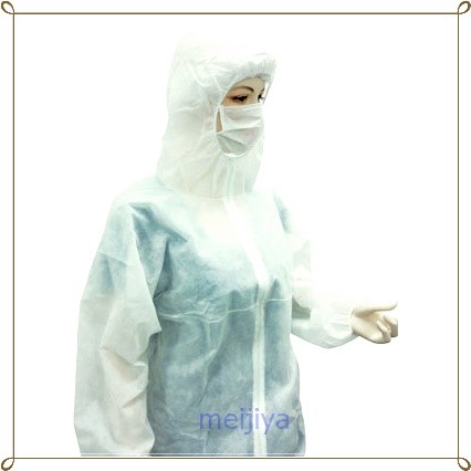 長繊維使用により発塵しにくい不織布製のフード付きつなぎ服です。(注)マスク、手袋は付いていません。