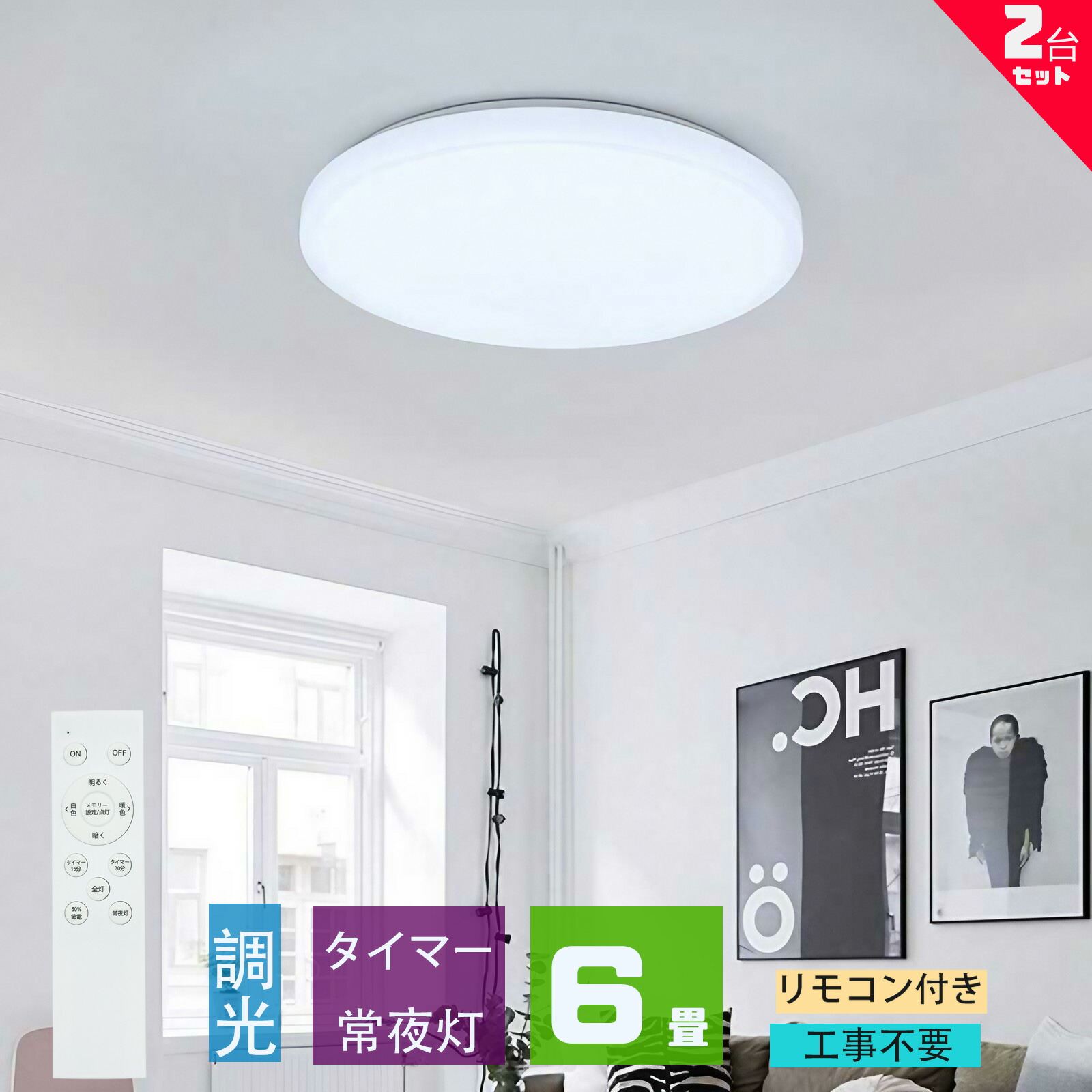 シーリングライト led 6畳 調光 薄形 リモコン付き LEDシーリングライト6畳 照明器具 天井照明 6畳用 おしゃれ 軽い 常夜灯 タイマー洋室 和室 6畳用 2台セット