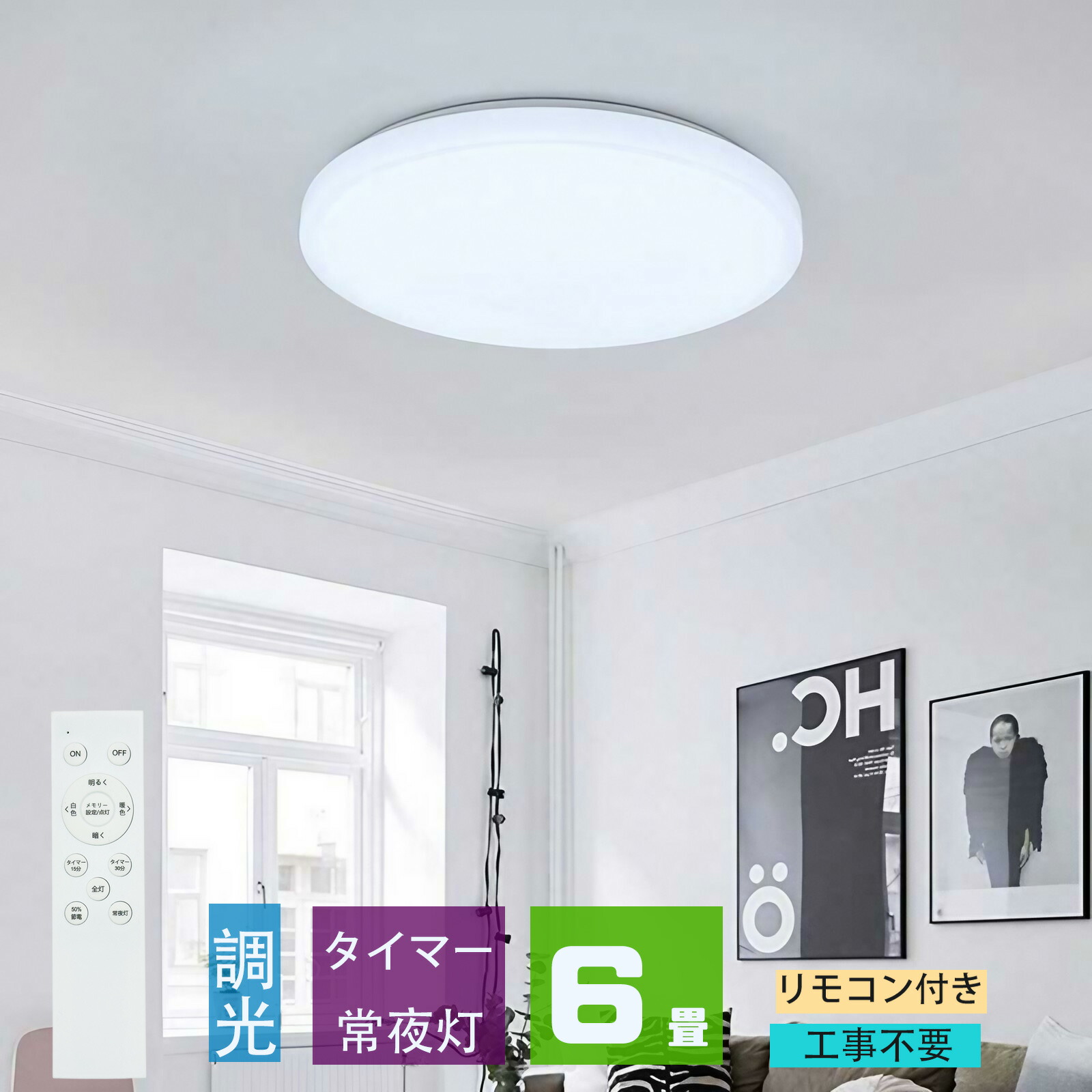 シーリングライト led 6畳 調光 薄形 リモコン付き LEDシーリングライト6畳 照明器具 天井照明 6畳用 おしゃれ 軽い 常夜灯 タイマー洋室 和室 6畳用