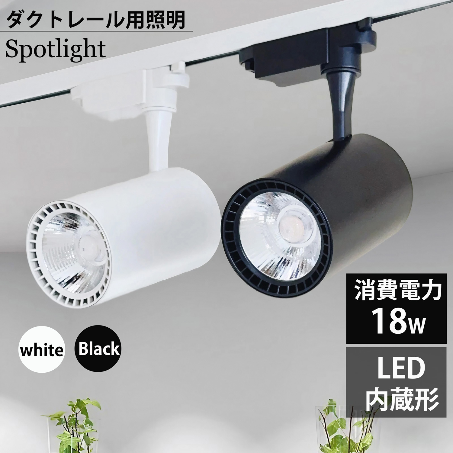ダクトレール用 スポットライト LED内蔵型 ライティングレール LEDスポットライト 18W 電球色 昼白色 200W相当 ライティングレール用 レールライト COB 白 黒
