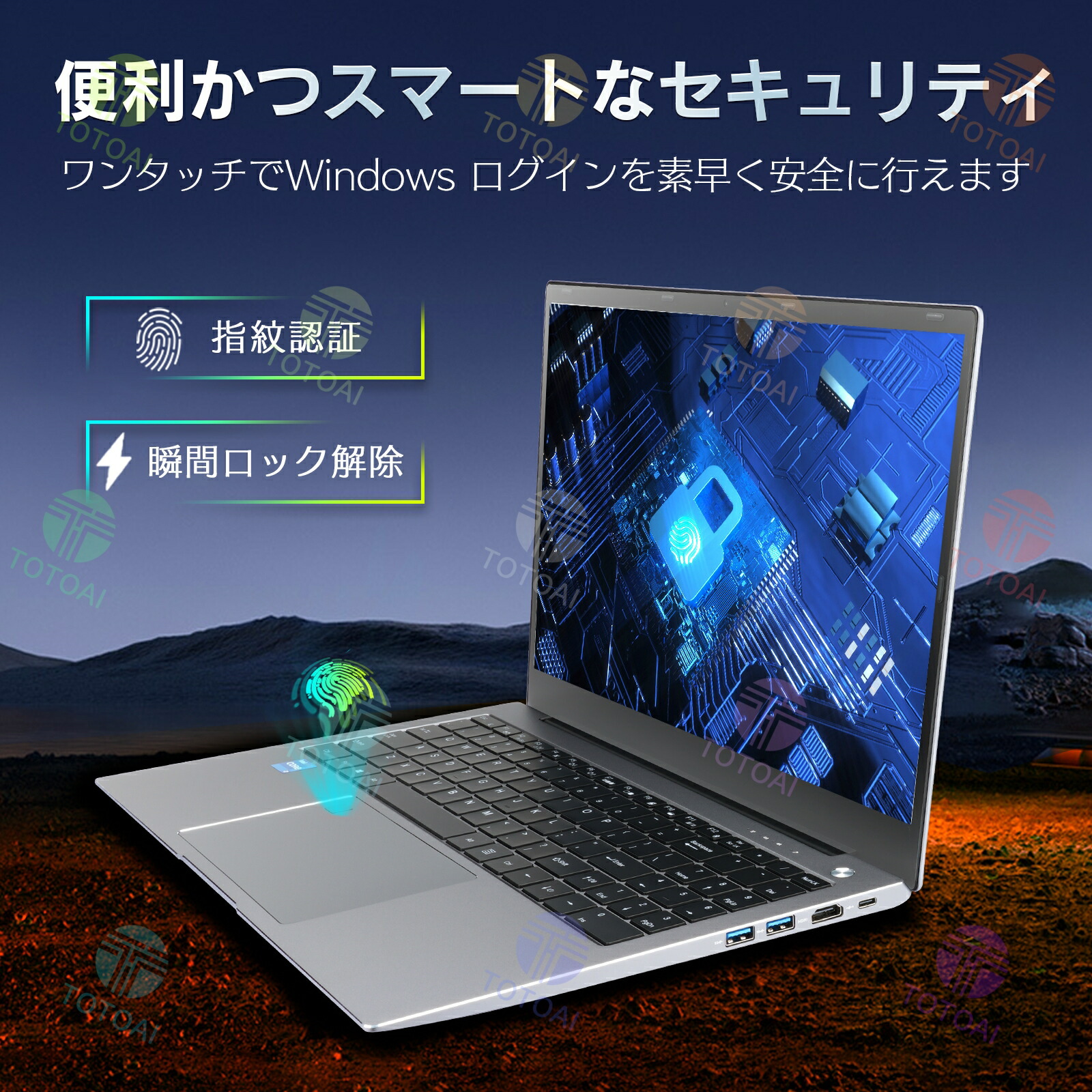キーボード:テンキーバックライト付きキーボード、指紋ロック解除