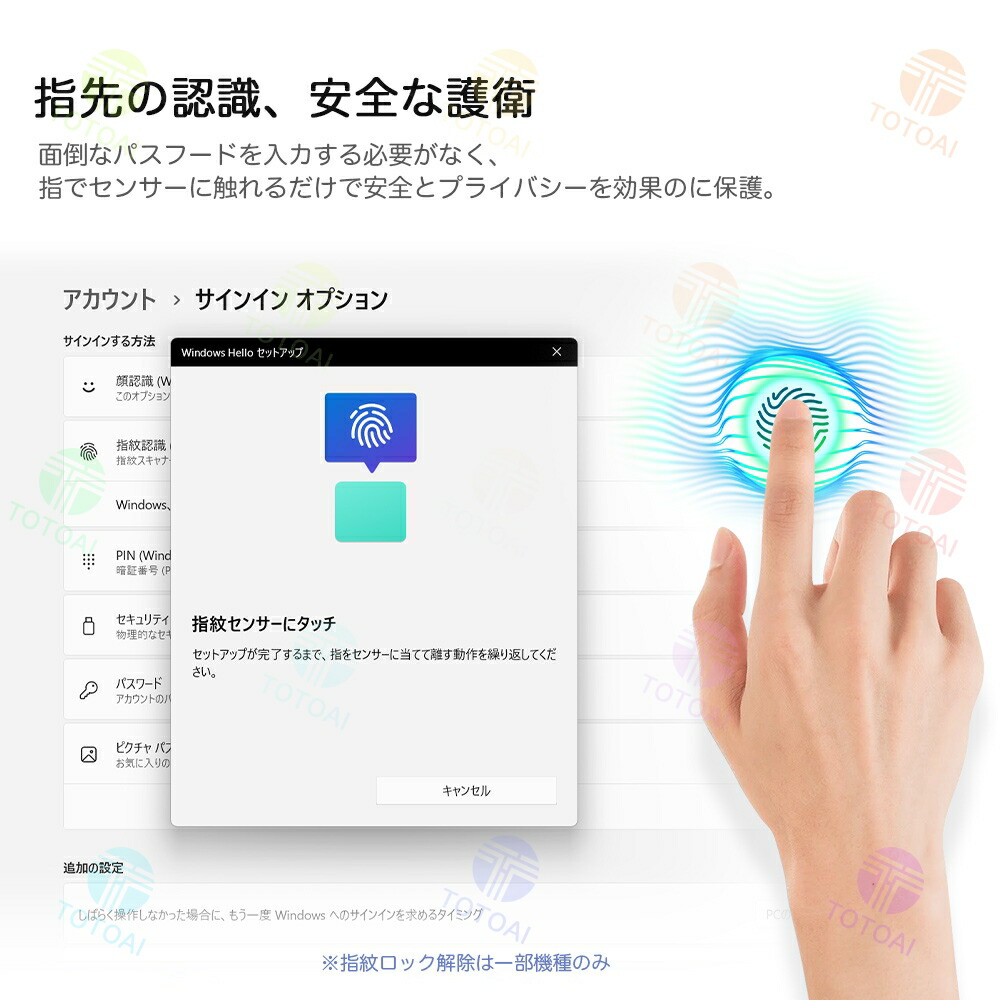 キーボード:ンキー付きフルサイズキーボードテ、指紋ロック解除