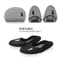 携帯スリッパ ネコ刺繍 レディース 2つ折り携帯スリッパ ポーチ付き 携帯 cat スリッパ