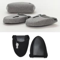 二つ折りでコンパクトに持ち運べる携帯スリッパです。