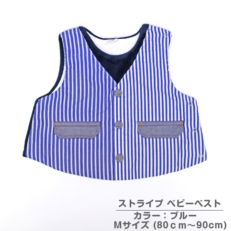 RAG MART ラグマート ベビーベスト ブルー M ジレ ストライプ キルト パイル フォーマル ベビー服 ベビードレス ドレッシー シック