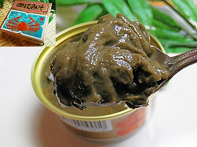 濃緑茶色をしていますが、カニミソ本来の色です。