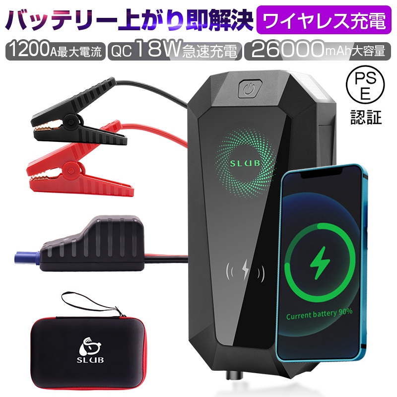ジャンプスターター 12V車用エンジンスターター 26000mAh ブースターケーブル付き 緊急照明 防災電源 ガソリン車 ディーゼル車対応【PL保険加入済み製品・安心】