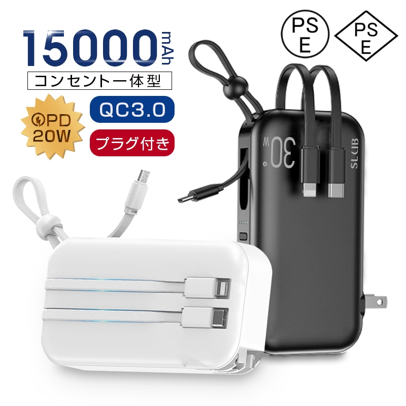 モバイルバッテリー 15000mAh ACアダプター 防災電源 PD充電器 QC3.0 USB充電器 iPhone17充電 PSE認証【PL保険加入済み製品・安心】