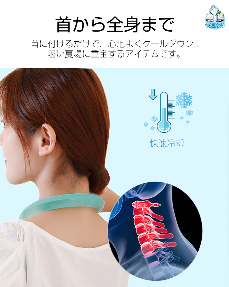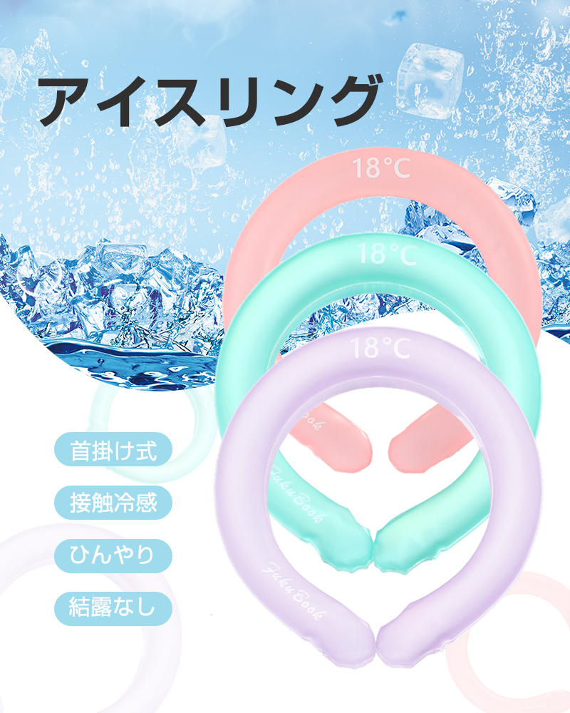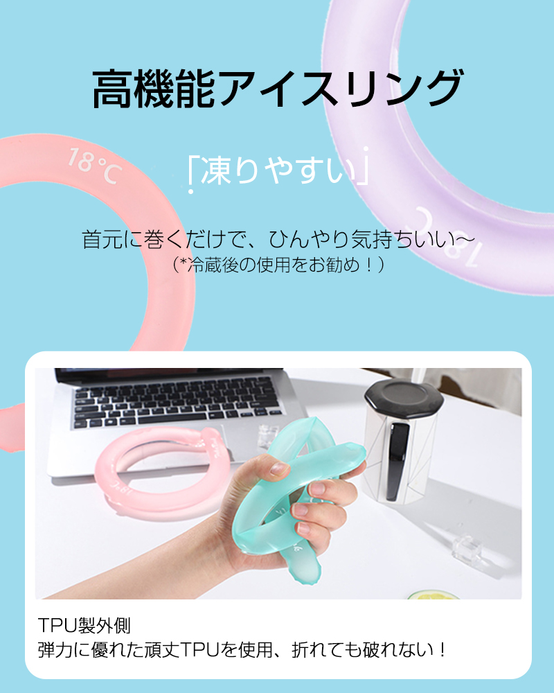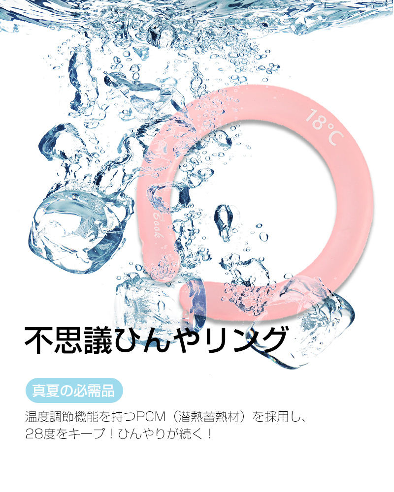 クールリング ネックリング ネック用 ネックピロー型 首冷却 クールネックバンド 猛暑/熱中症対策 冷却グッズ ひんやり 28度キープ 抗菌加工プラ 安全なPC素材