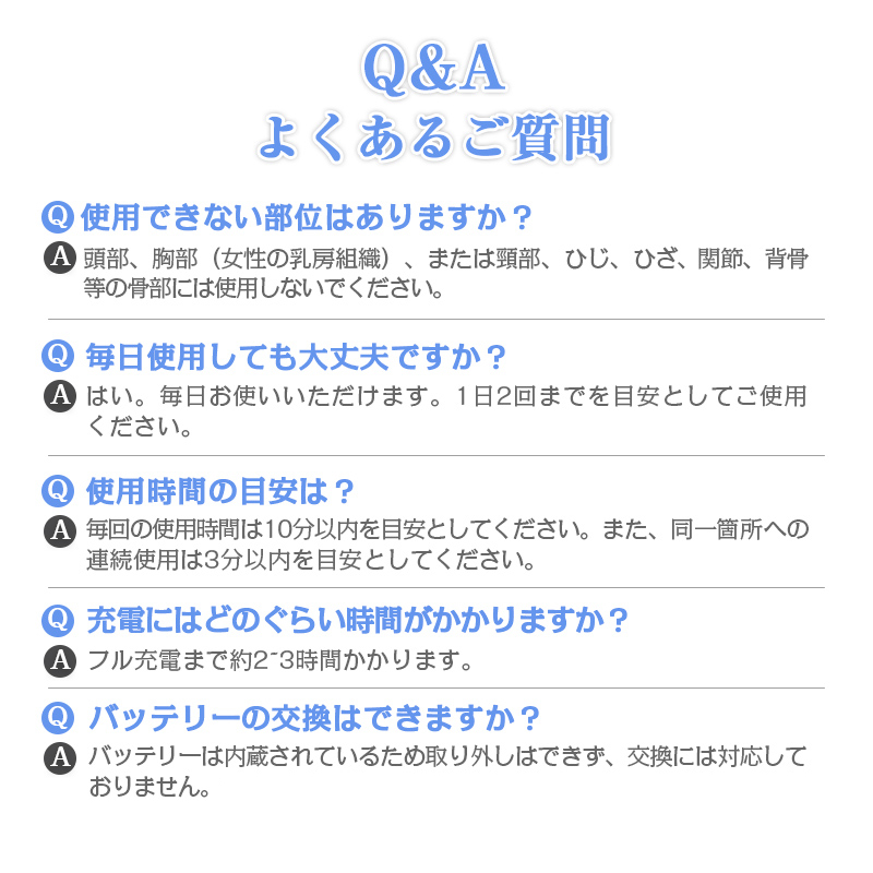 1.アタッチメントは、球形・U字形・円柱形・平形の4種類が付き、各部位の使用にフィットします。